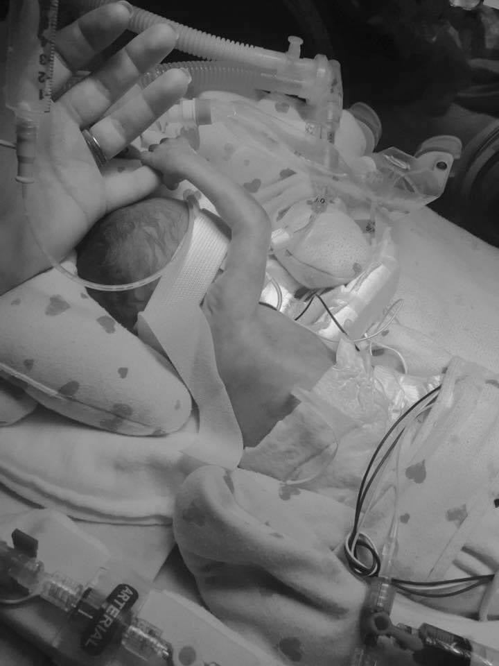 I was immediately rushed to a large hospital, 56 miles away, having a level 4 NICU. I was put on bed rest on a high risk maternity floor where I, miraculously, kept my daughter in womb for another 5 weeks. Juniper Kae was born on January 8th, weighing just 2 lbs 8 oz, and fighting for her life.